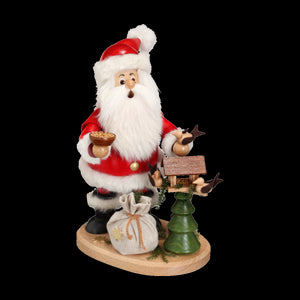 Der Räucherkerzen-Adventskalender - Pyramide von Original Crottendorfer Räucherkerzen zeigt festlichen Weihnachtsmann, Rentiere, Bäume und Geschenke auf einem verschneiten Hintergrund. Öffnen Sie jedes Fenster, um 24 verschiedene Düfte zu entdecken!.